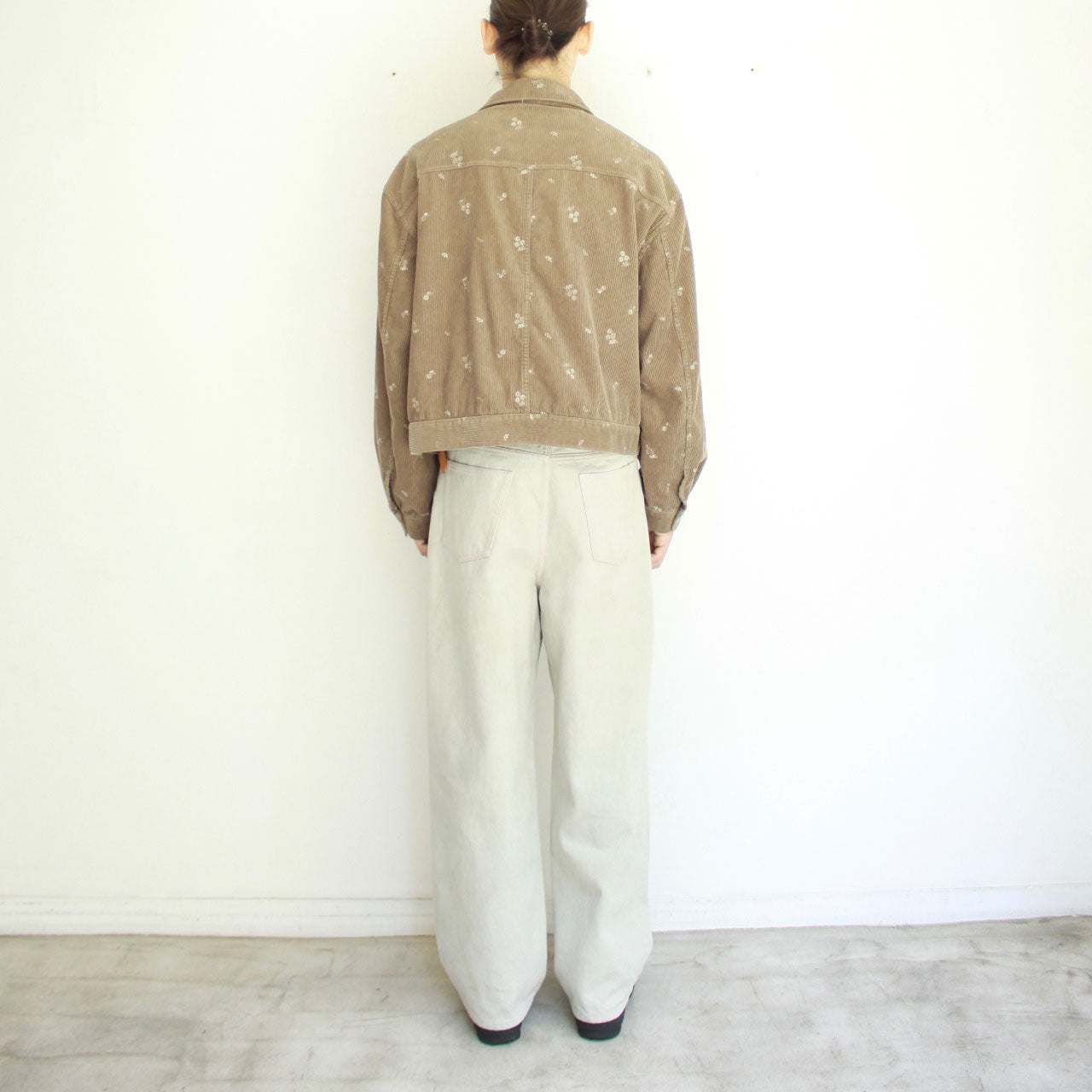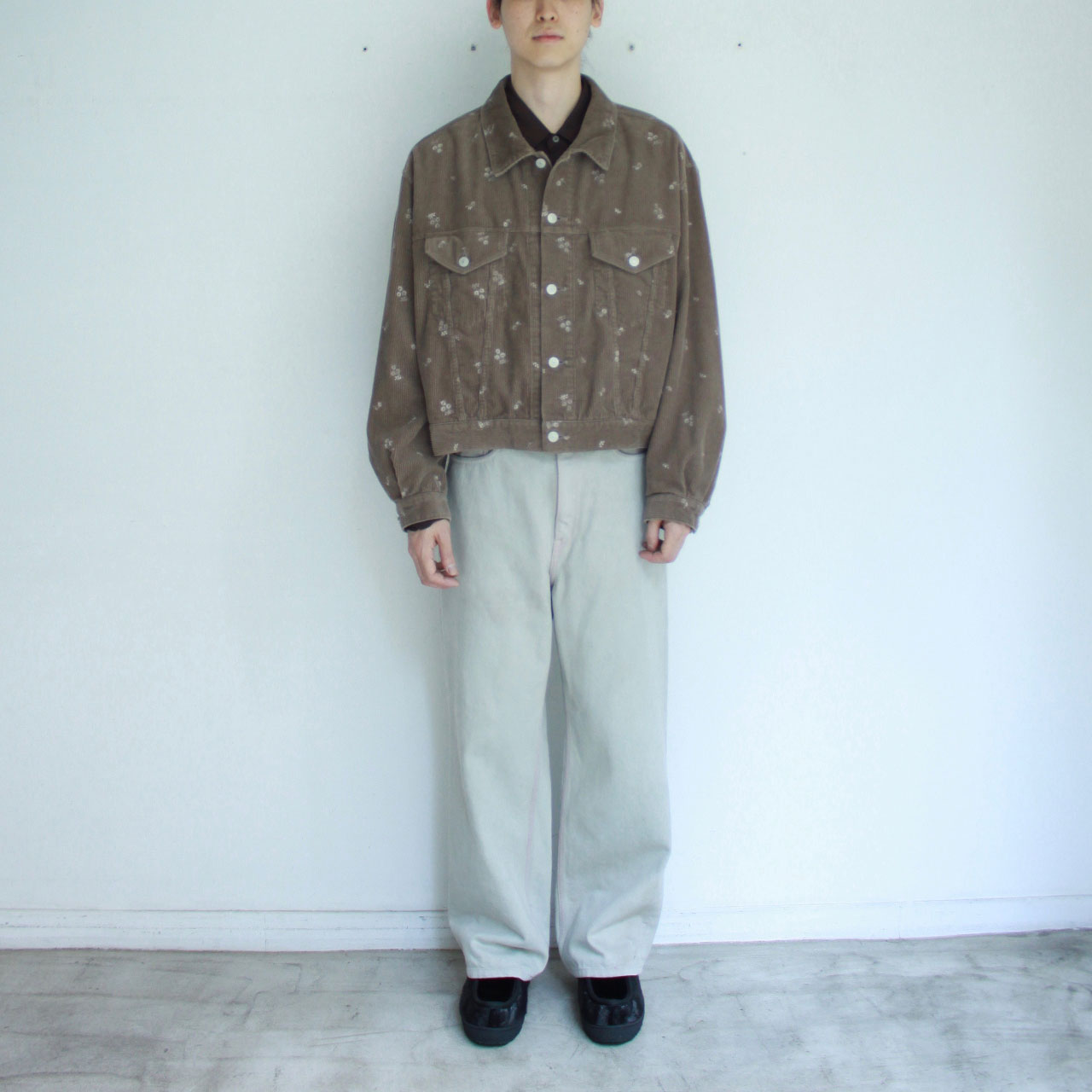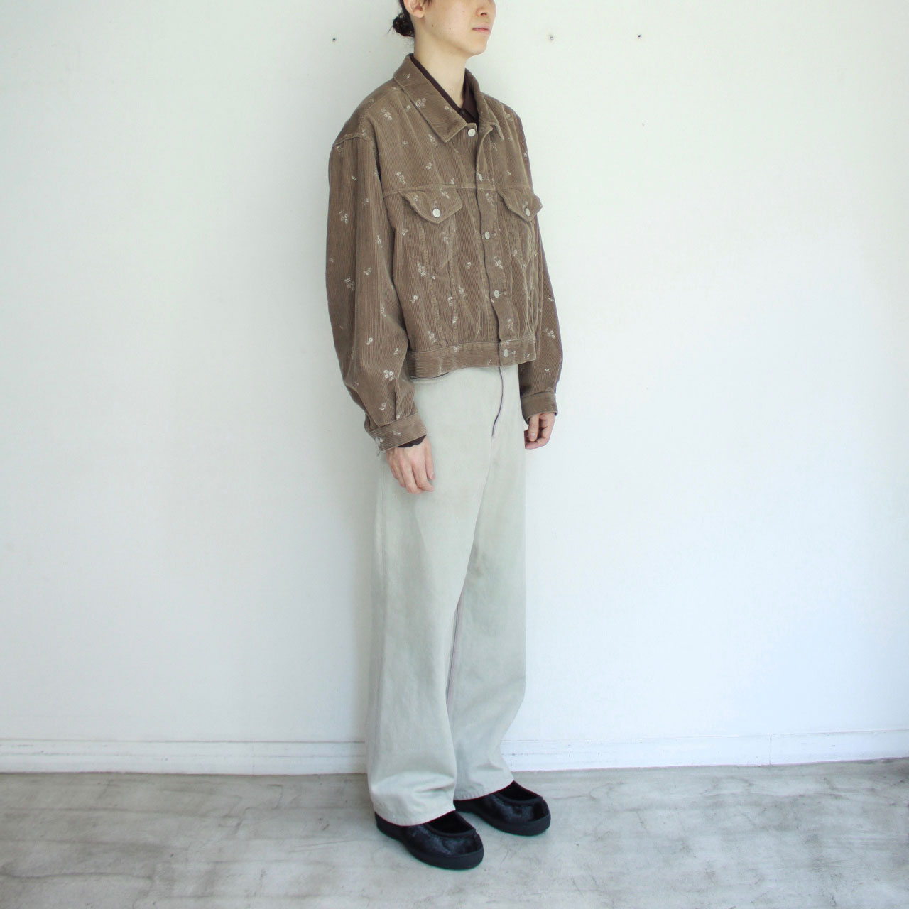 大きく落ちるドロップショルダー、ゆったりとした身幅などオーバーサイズのフィットとショート丈の絶妙なバランス感が特徴的なトラックジャケットです。コーデュロイをベースに、ヴィンテージキルトから着想を得たフォークロアな花柄の刺繍が印象的です。仕上げにバイオ加工を施すことで、柔らかく落ち感のある風合いに仕上がっています。