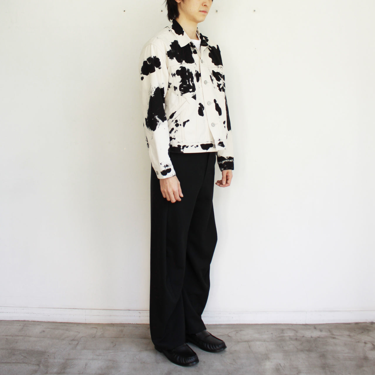 ユーロ規格のリーバイス3rdブルゾンを原型に現代のシルエットにアップデートを施した1枚。BEIGEの上から黒く製品染めを行い、ウォッシュをすることで独特のスモーキーカラーを表現しています。